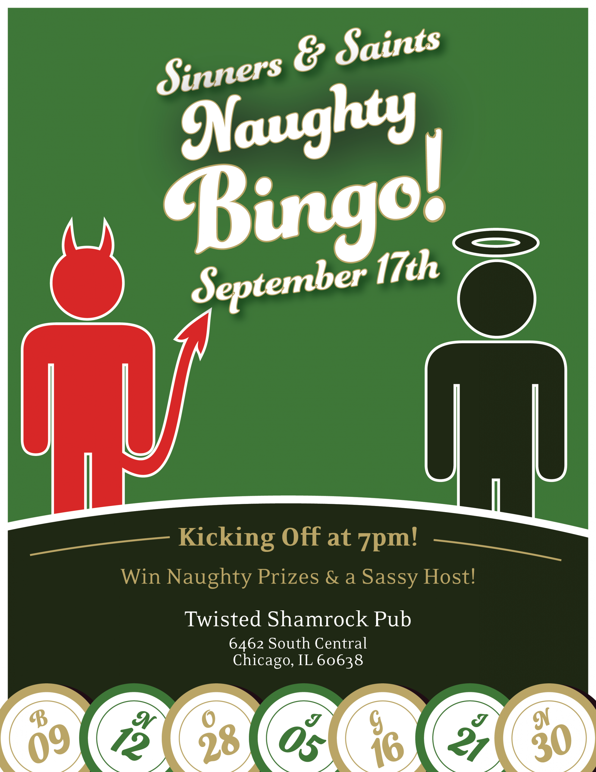 Twisted Shamrock Pub 6462 S Central Ave, Chicago, IllinoisGet ready for a bingo night like no other—where the prizes are just as wild as the game itself! Join us for Naughty Bingo Night,’ where your numbers could win you some very adult surprises. What to Expect: A night full of laughter, playful competition, and maybe even a little blushing! No cover charge—just bring […]